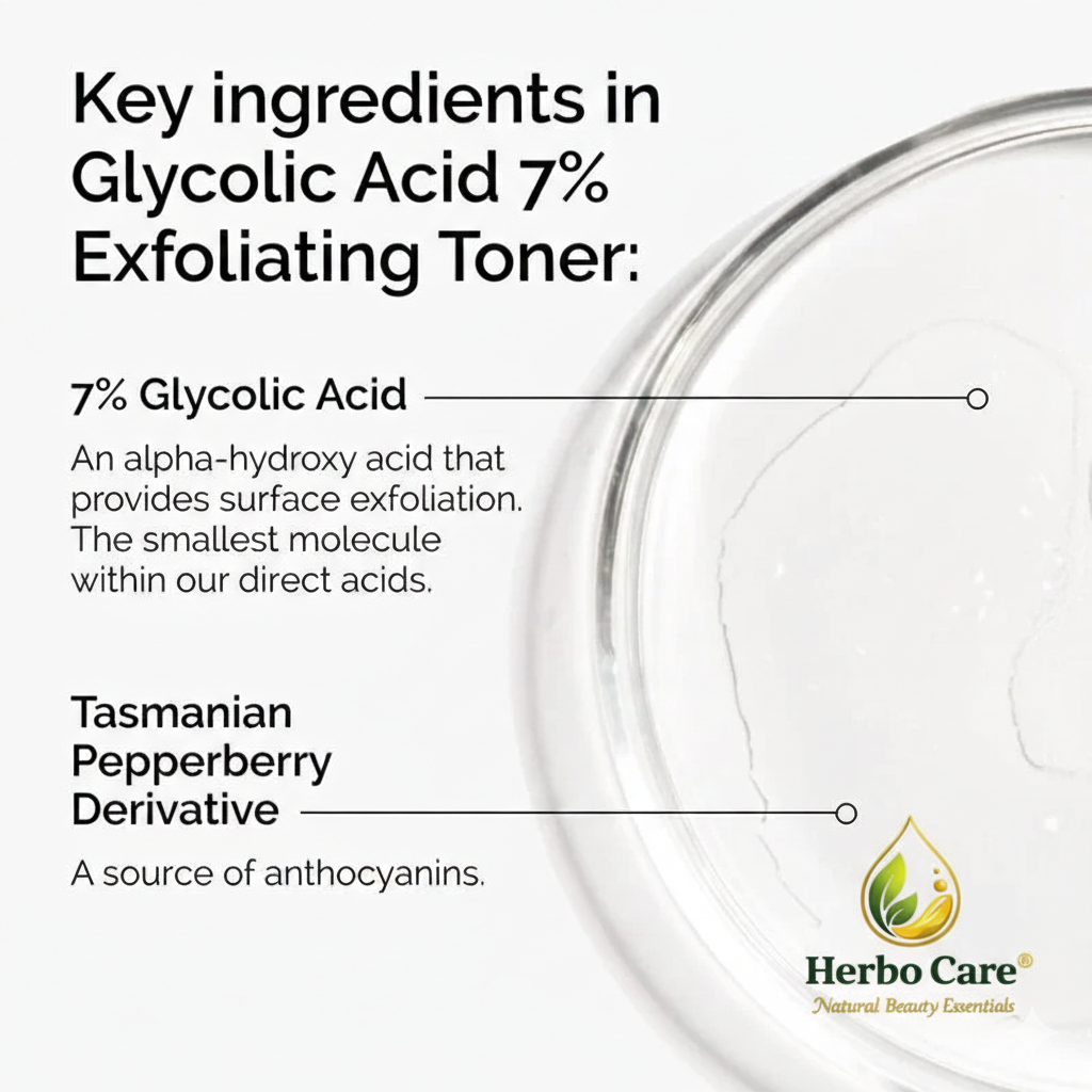 - 7% Glycolic Acid - An alpha-hydroxy acid that provides surface exfoliation. The smallest molecule within direct acids for deeper penetration